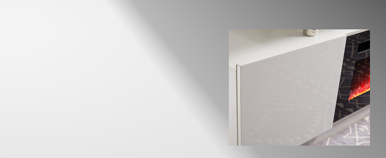 - High gloss entertainment stand top and front doors with matte white body show luxury and modernity. LED kit includes 12 changeable colors and 36 kinds of color combinations to custom a personalized dazzle lighting atmosphere and unique experience